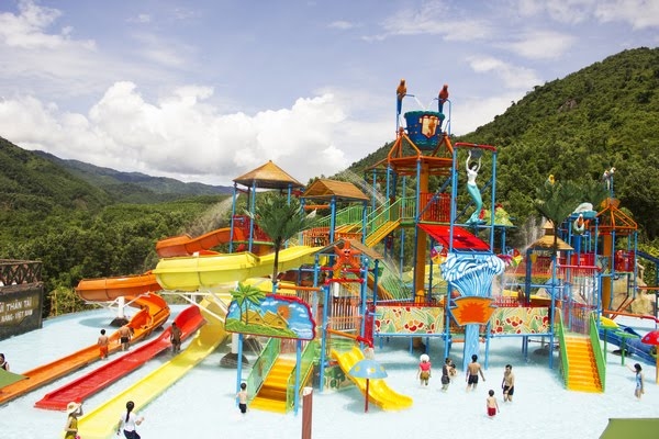 14h30: Quý khách sẽ được tận mắt chiêm ngưỡng và hòa mình vào Công viên nước Khổng Lồ giữa vùng núi non trùng điệp, với vô số các trò chơi nước hiện đại: Đường Trượt mạo hiểm, Hố đen vũ trụ, Trải nghiệm vùng biển thu nhỏ ngay trên núi cao với Hồ Sóng nhân tạo...